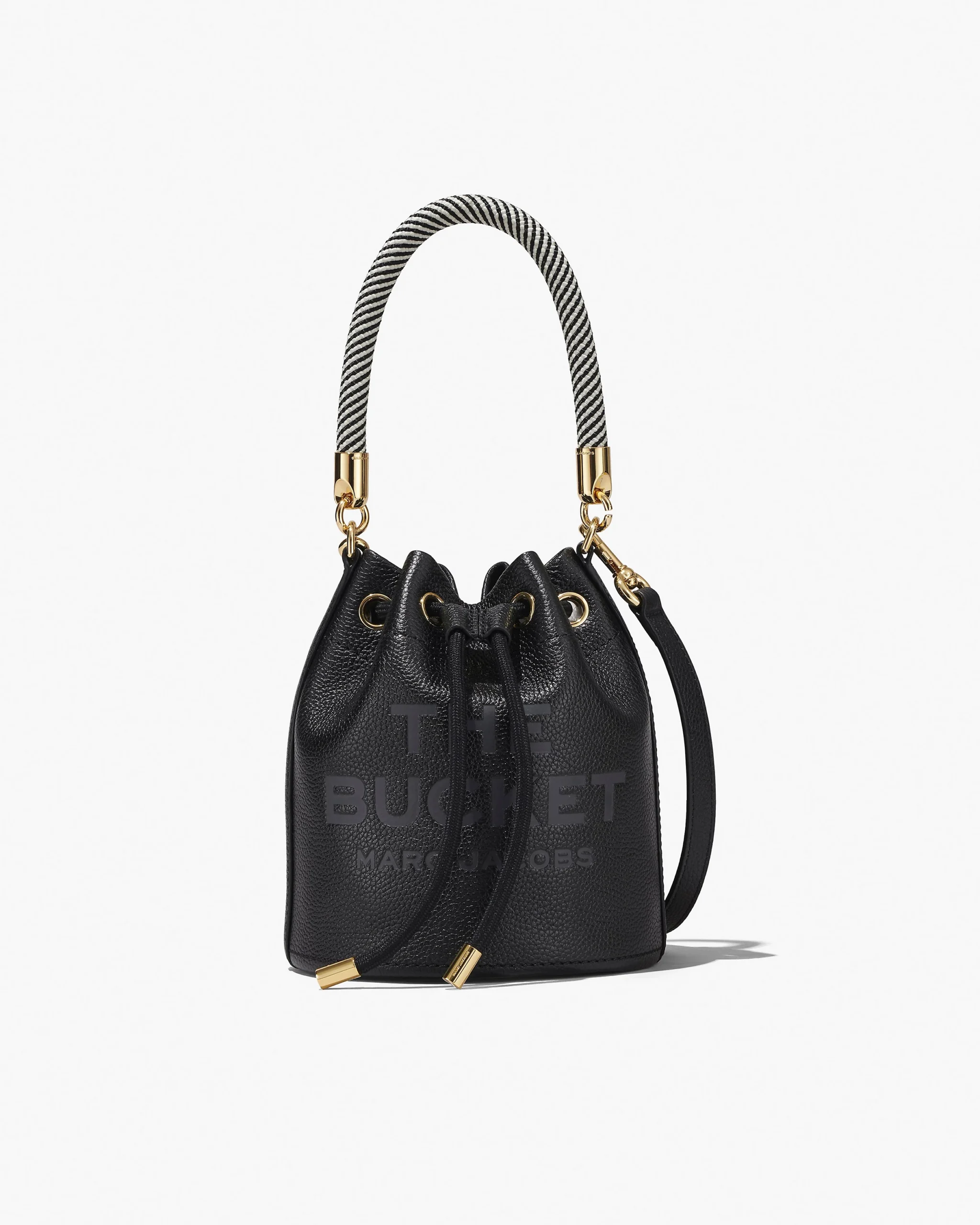 The Marc Jacobs Leather Bucket Bag stands out with its unique shape, adding a touch of personality to your style. It features metallic hardware for a refined look and a drawstring closure that makes it both stylish and functional. Designed to sit upright when set down, it keeps your belongings secure and easily accessible.